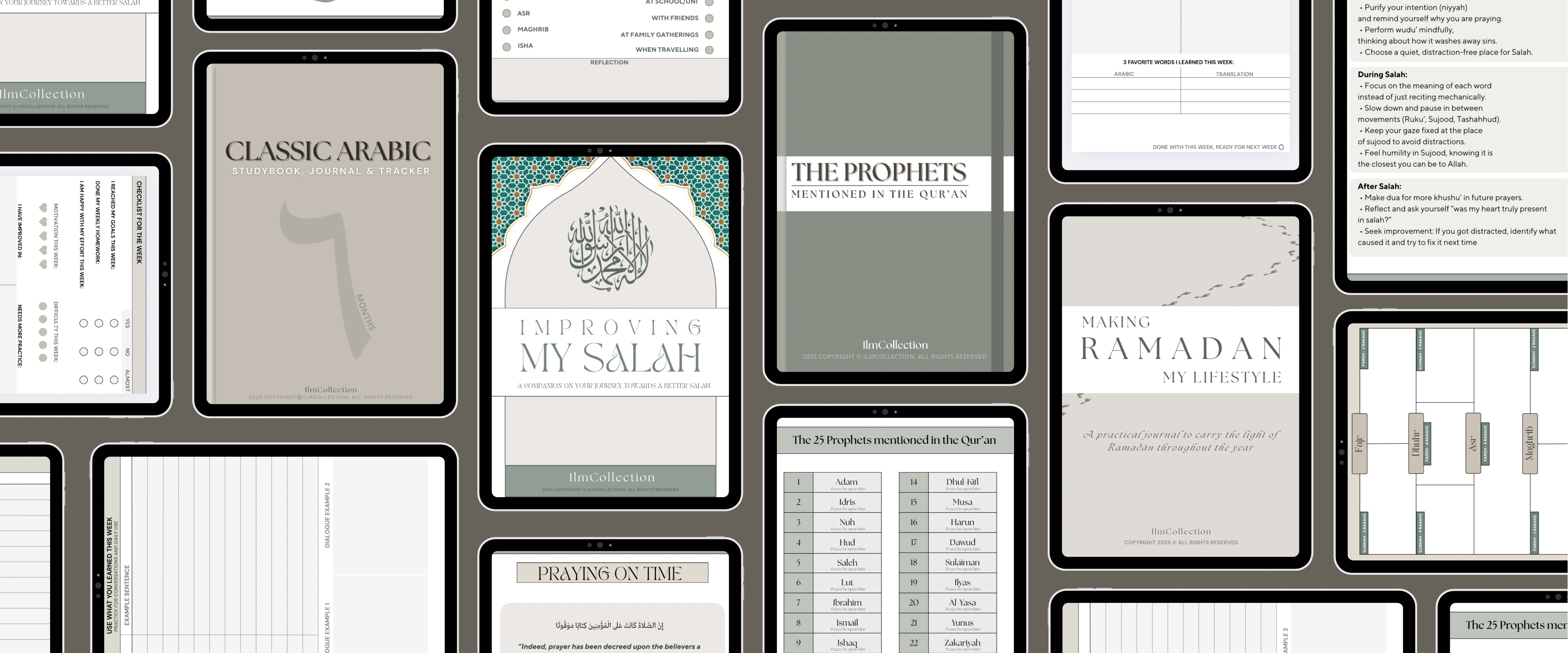 Knowledge lights the path to faith, action, and understanding, and it is through ‘ilm that we grow closer to Allah and live with purpose. At IlmCollection, we believe that learning should be intentional, accessible, and preserved. That’s why we create journals and planners designed to help you collect, reflect on, and apply the knowledge you gain on your journey.